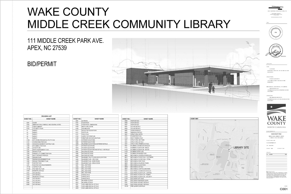 WAKE COUNTY COMMUNITY LIBRARY, MIDDLE CREEK PARK AVE.